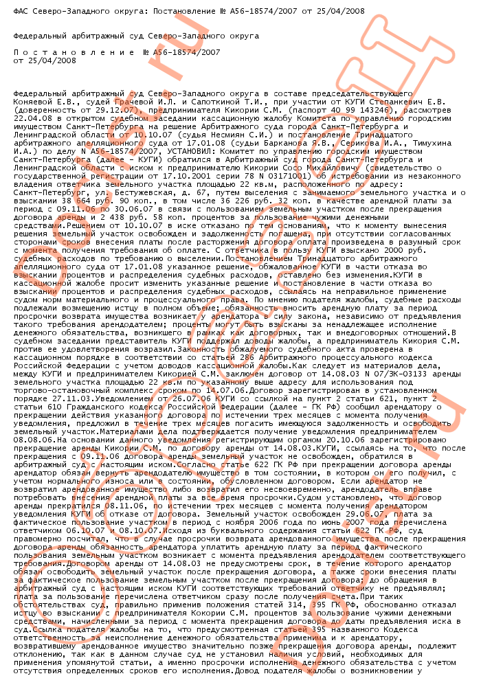 ФАС Северо-Западного округа: Постановление № А56-18574/2007 от 25/04/2008 скачать образец документа