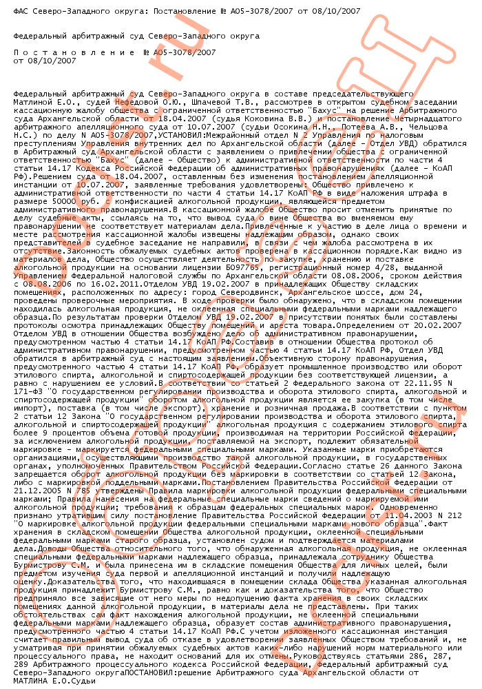 ФАС Северо-Западного округа: Постановление № А05-3078/2007 от 08/10/2007 скачать образец документа