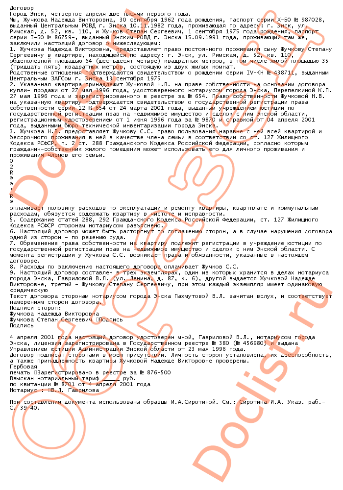 Договор о предоставлении права постоянного проживания и о передаче в пользование квартиры скачать образец