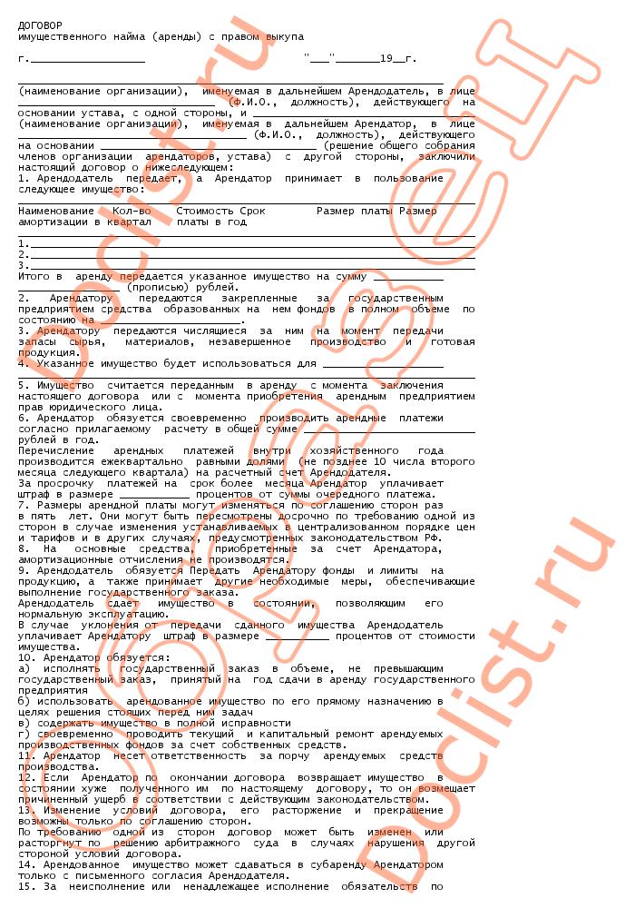 Договор имущественного найма (аренды) с правом выкупа скачать образец