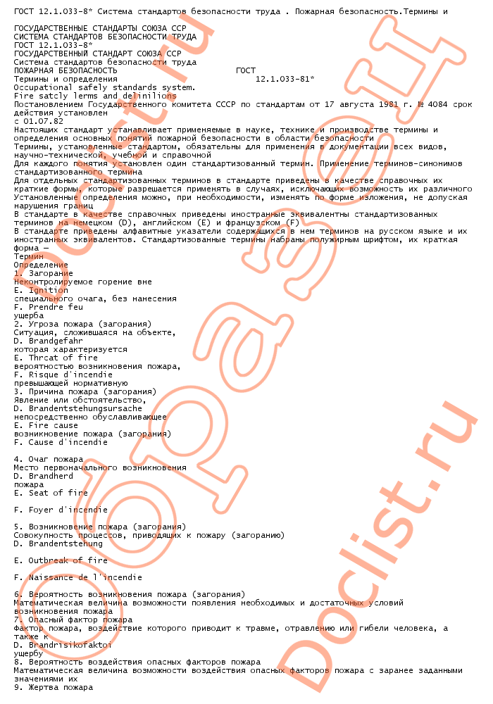 ГОСТ 12. 1. 033-8* система стандартов безопасности труда . Пожарная безопасность. Термины и определения скачать