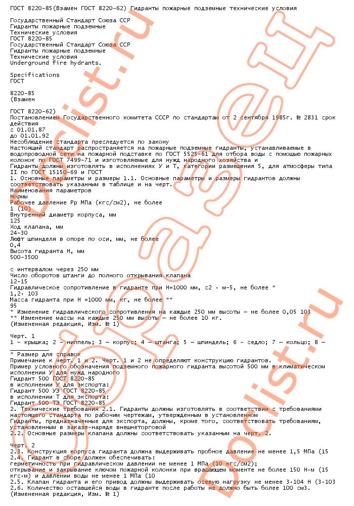 ГОСТ 8220-85(взамен ГОСТ 8220-62) гидранты пожарные подземные технические условия скачать