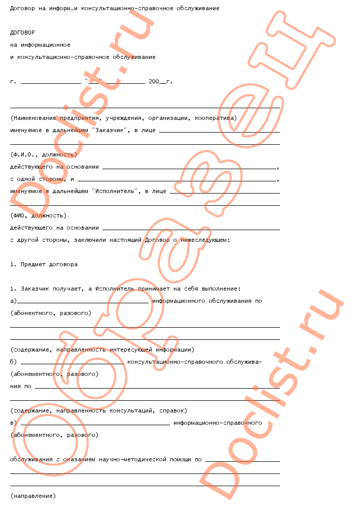 Договор на информ. И консультационно-справочное обслуживание скачать образец