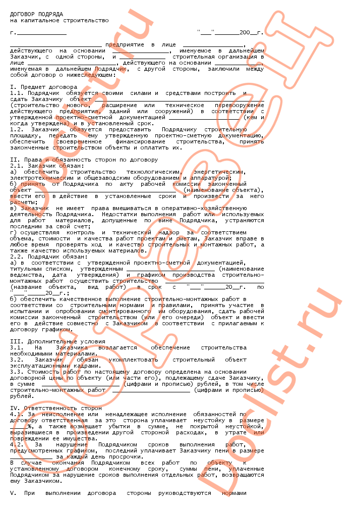 Договор подряда на капитальное строительство скачать образец