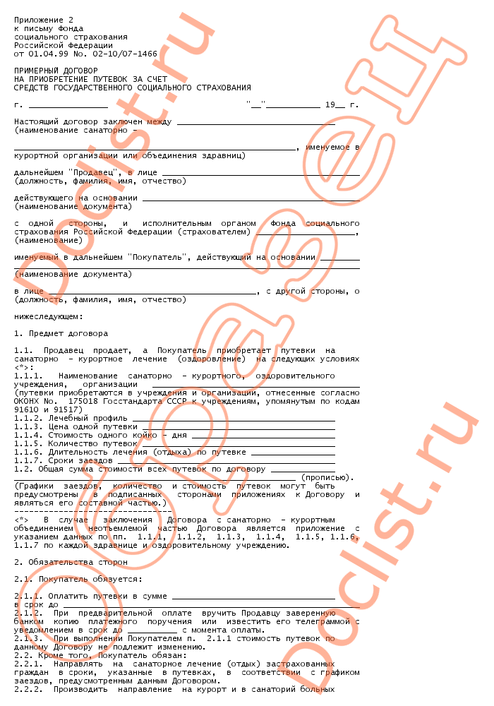 Примерный договор на приобретение путевок за счет средств государственного социального страхования скачать образец