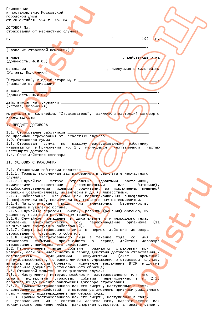 Главная :: Договоры :: Договор страхования :: Договор страхования от несчастных случаев (коллективное страхование)