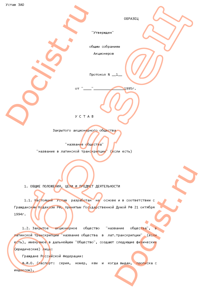 Устав зао скачать образец документа