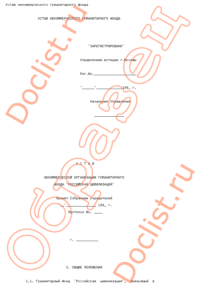 Устав некоммерческого гуманитарного фонда скачать образец документа