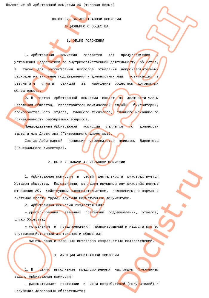 Положение об арбитражной комиссии ао (типовая форма) скачать образец документа