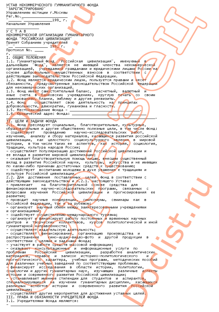 Устав некоммерческого гумманитарного фонда скачать образец документа