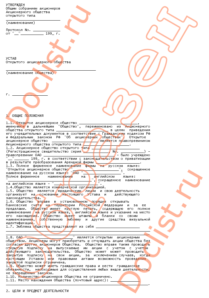 Устав открытого акционерного общества, подлежащего государственной регистрации в связи с внесением изменений и дополнений в учредительные документы общества в соответствии с действующим законодательством скачать образец