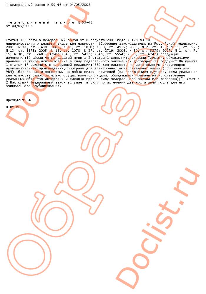 : Федеральный закон № 59-ФЗ от 04/05/2008 скачать образец документа