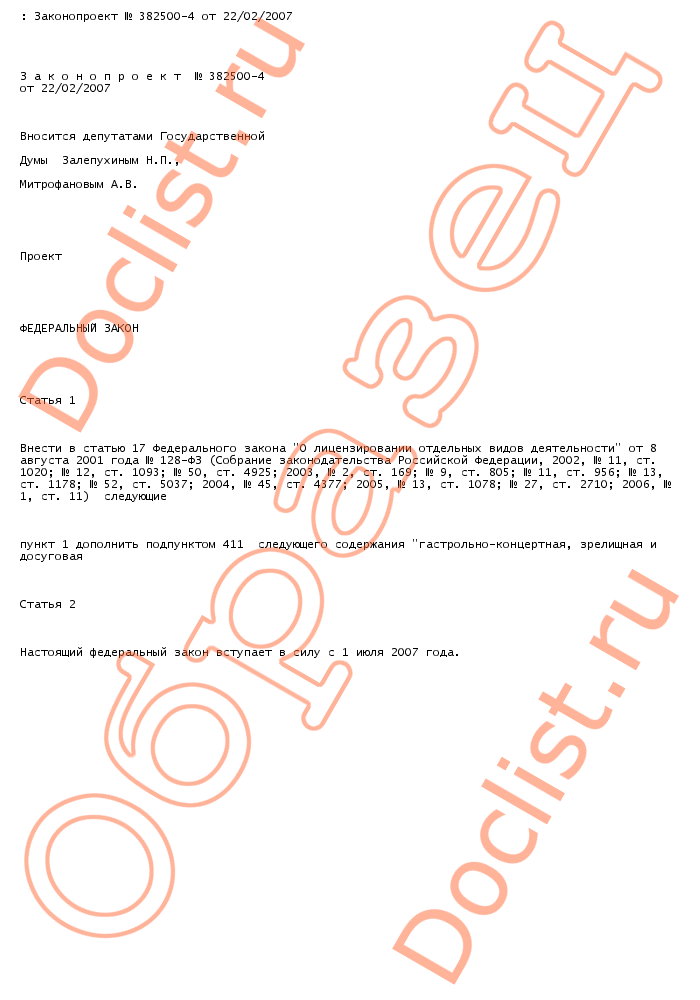 : Законопроект № 382500-4 от 22/02/2007 скачать образец документа