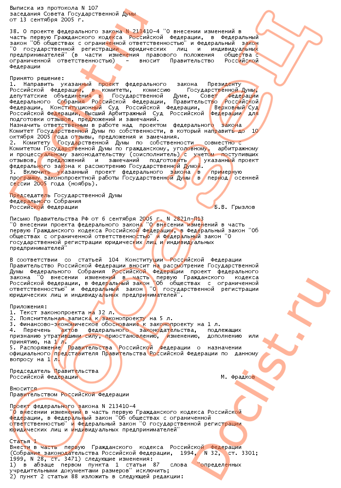 Проект федерального закона N 213410-4 "О внесении изменений в часть первую Гражданского кодекса Российской Федерации, в Федеральный закон "Об обществах с ограниченной ответственностью" и Федеральный закон "О государственной регистрации юридических лиц и и скачать образец документа
