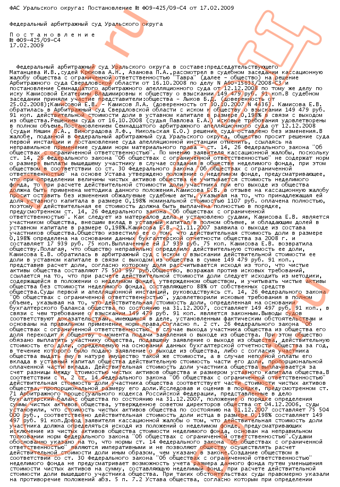 ФАС Уральского округа: Постановление № Ф09-425/09-С4 от 17.02.2009 скачать образец документа