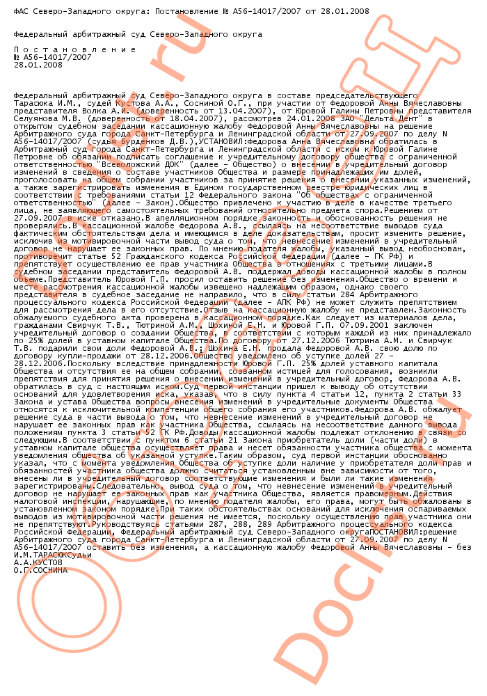 ФАС Северо-Западного округа: Постановление № А56-14017/2007 от 28.01.2008 скачать образец документа