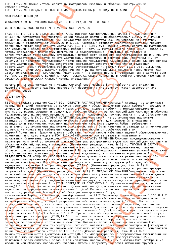 ГОСТ 12175-90 общие методы испытаний материалов изоляции и оболочек электрических кабелей. Методы . .. скачать