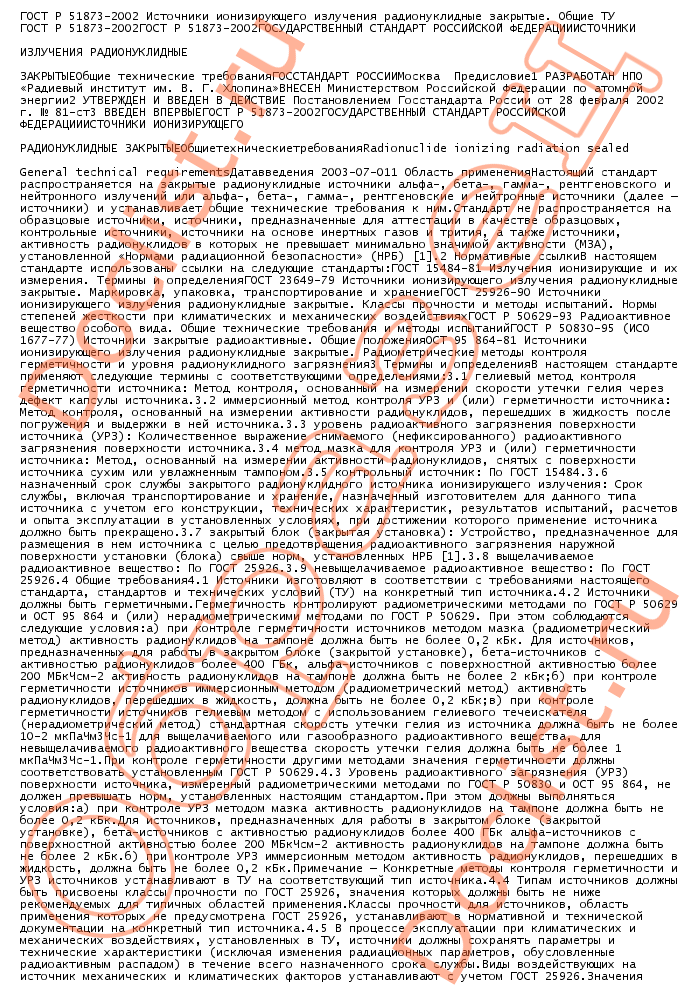 ГОСТ Р 51873-2002 источники ионизирующего излучения радионуклидные закрытые. Общие ту скачать