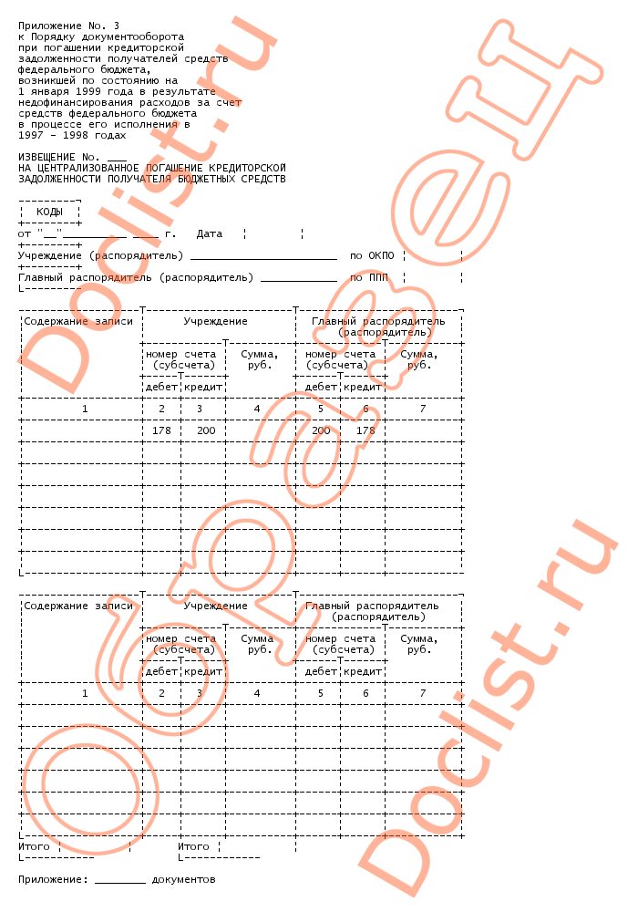 Извещение на централизованное погашение кредиторской задолженности получателя бюджетных средств скачать образец документа
