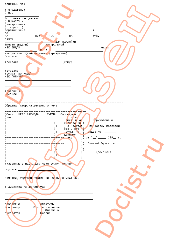 Денежный чек скачать образец документа