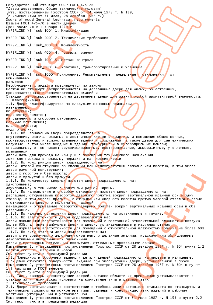 Главная :: Нормативы и стандарты :: Государственные стандарты (ГОСТы) :: Двери и окна :: ГОСТ 475-78