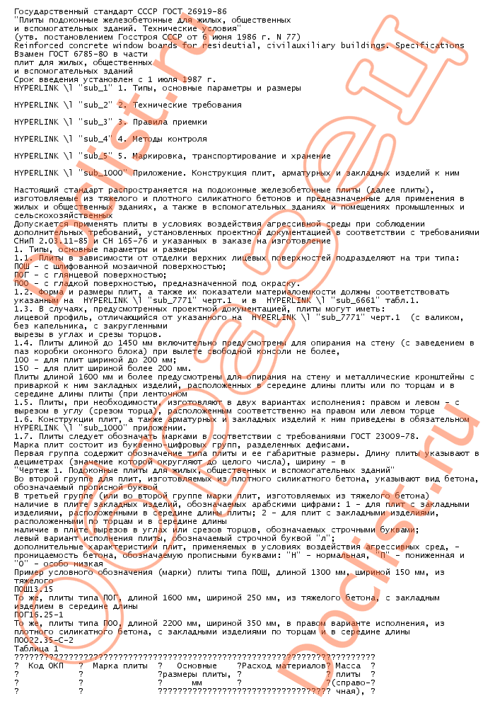 Главная :: Нормативы и стандарты :: Государственные стандарты (ГОСТы) :: Плиты бетонные, железобетонные :: ГОСТ 26919-86