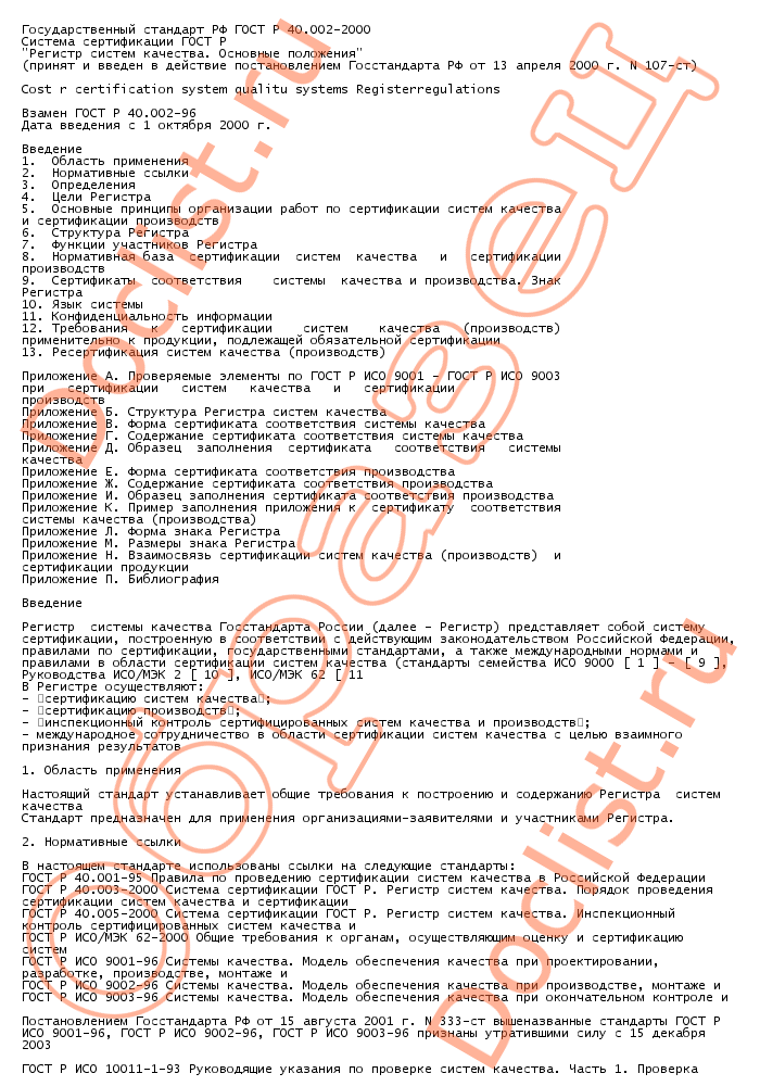 Главная :: Нормативы и стандарты :: Государственные стандарты (ГОСТы) :: Сертификация систем качества :: ГОСТ Р 40. 002-2000