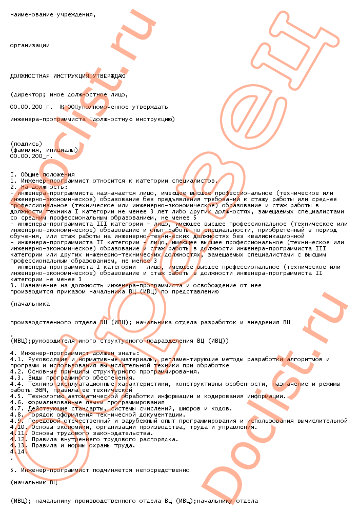 Должностная инструкция инженера-программиста (программиста) скачать образец