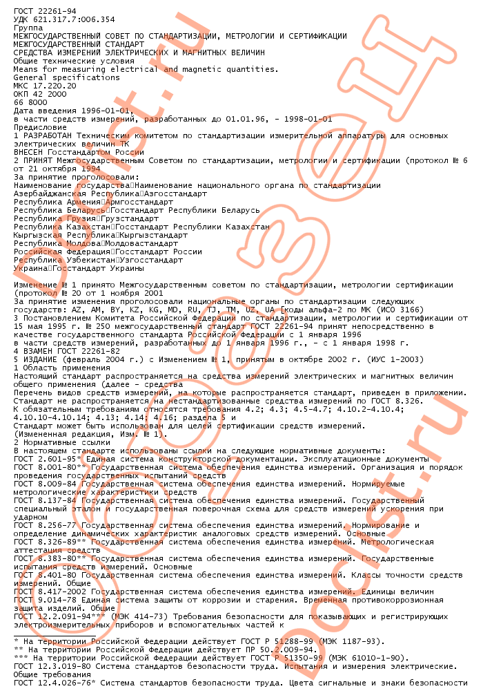 Главная :: Нормативы и стандарты :: Государственные стандарты (ГОСТы) :: Измерительные приборы :: ГОСТ 22261-94 (2004)