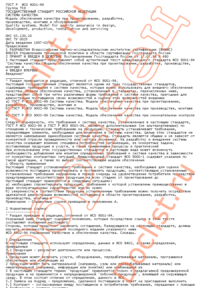 Главная :: Нормативы и стандарты :: Государственные стандарты (ГОСТы) :: Качество :: ГОСТ Р ИСО 9001-96