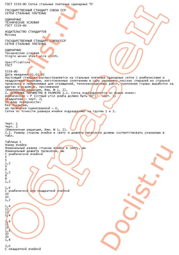 ГОСТ 5336-80 сетки стальные плетеные одинарные ту скачать