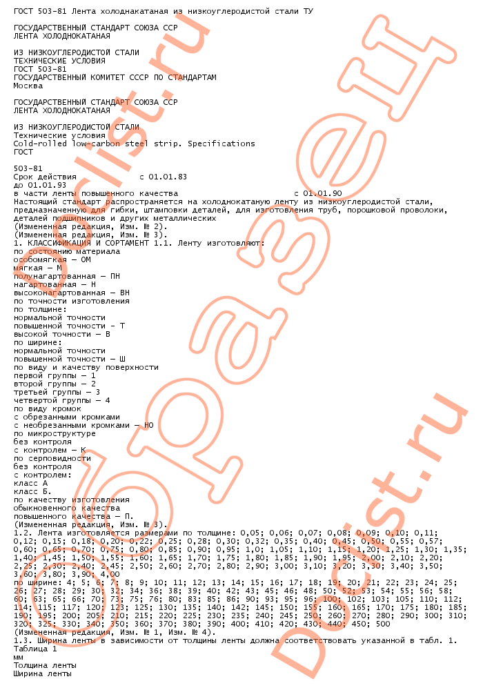 ГОСТ 503-81 лента холоднакатаная из низкоуглеродистой стали ту скачать