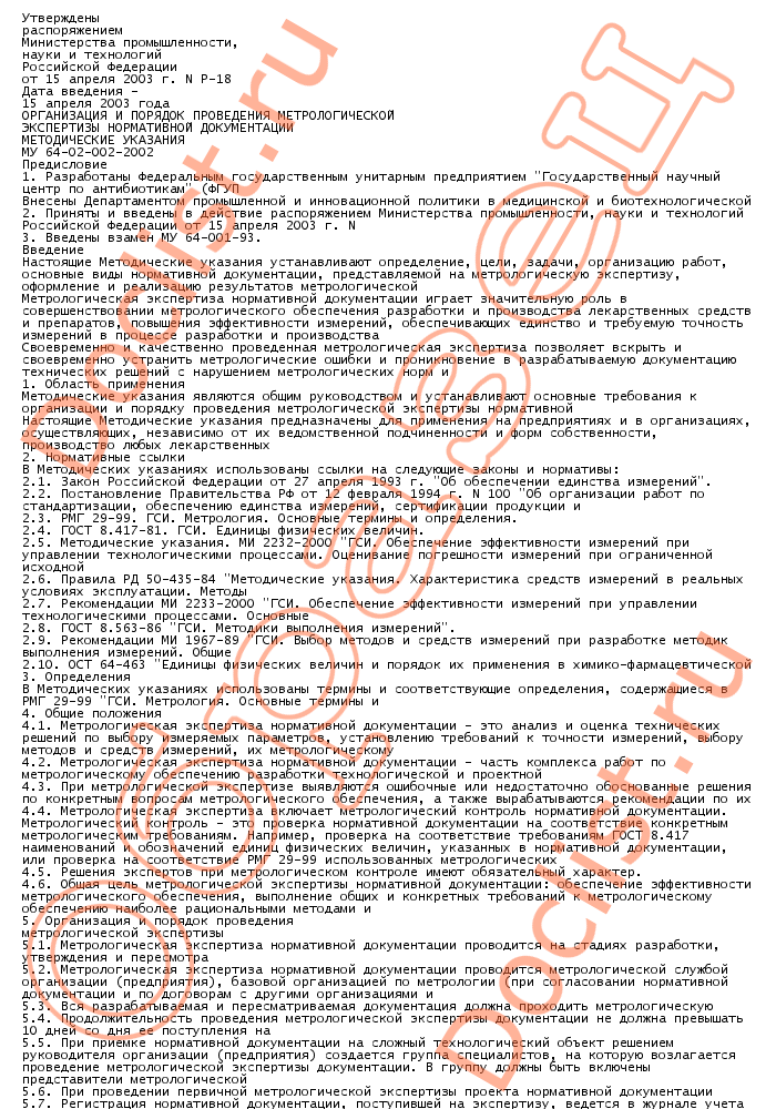 МУ 64-02-002-2002 Организация и порядок проведения метрологической экспертизы нормативной документации скачать