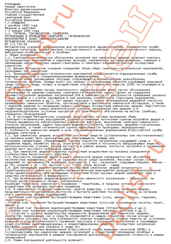 МУ 1.1.724-98 Организация и проведение санитарно-гигиенических мероприятий в зонах химических аварий скачать