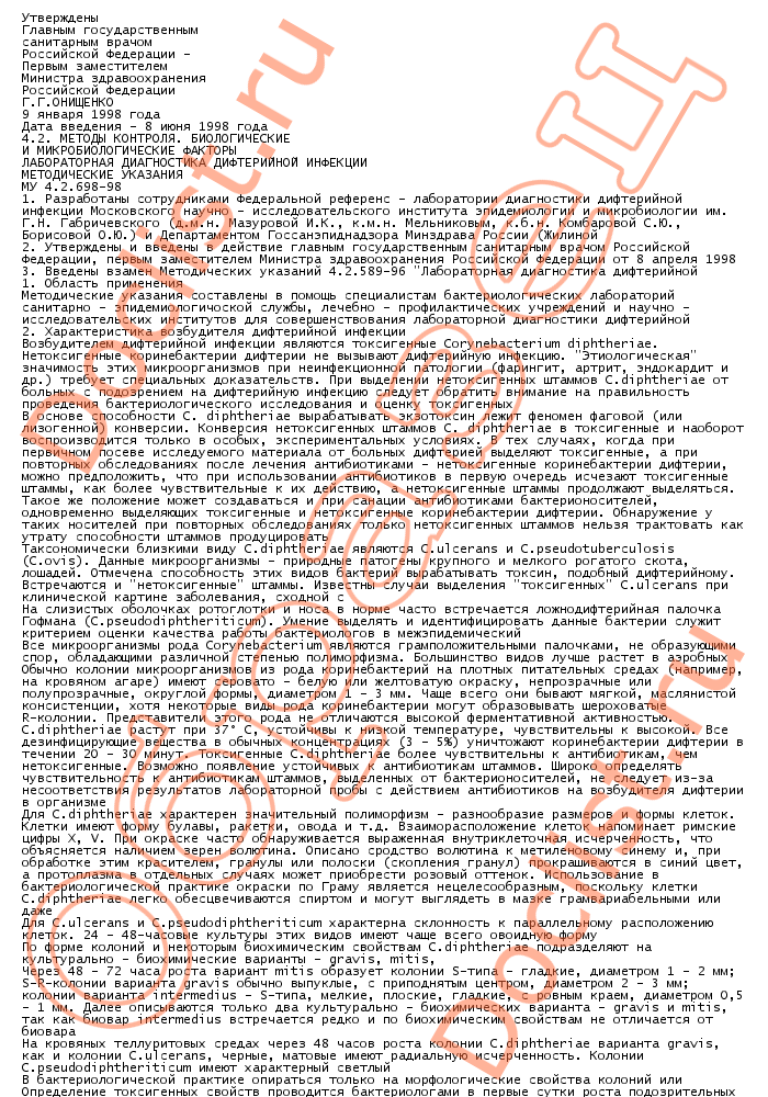 МУ 4.2.698-98 Лабораторная диагностика дифтерийной инфекции скачать