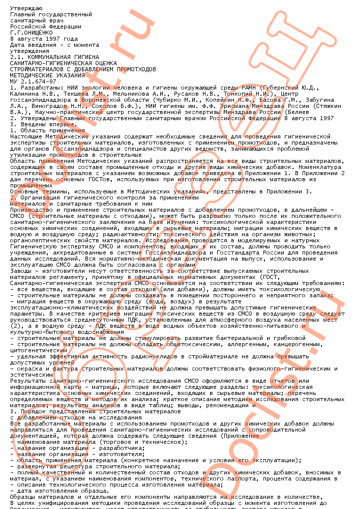 Му 2. 1. 674-97 Коммунальная гигиена. Санитарно-гигиеническая оценка стройматериалов с добавлением промотходов скачать