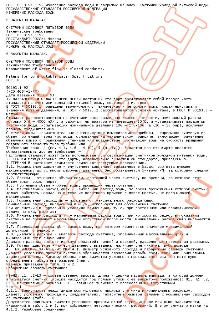 ГОСТ p 50193. 1-92 измерение расхода воды в закрытых каналах. Счетчики холодной питьевой воды. Тре. .. скачать