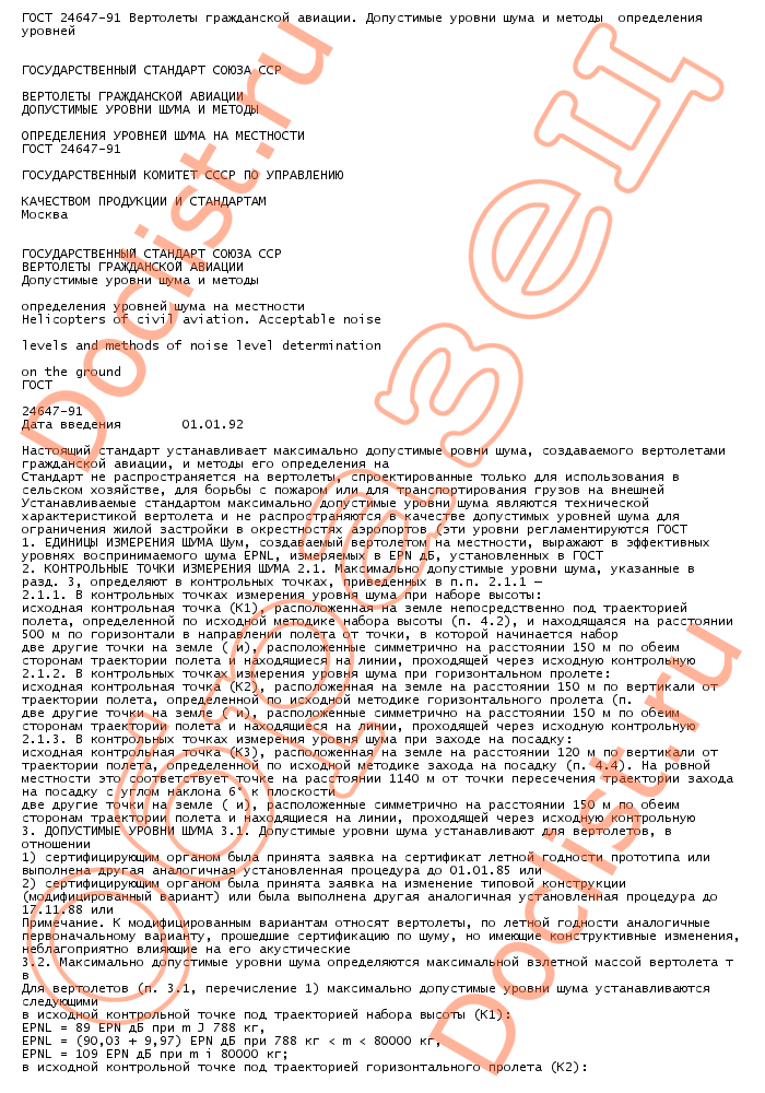 ГОСТ 24647-91 вертолеты гражданской авиации. Допустимые уровни шума и методы определения уровней . . скачать