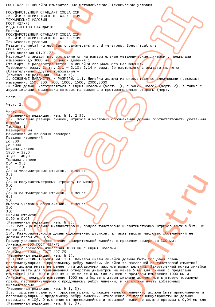 Главная :: Нормативы и стандарты :: Государственные стандарты (ГОСТы) :: Метрология и измерения :: ГОСТ 427-75 линейки измерительные металлические. Технические условия