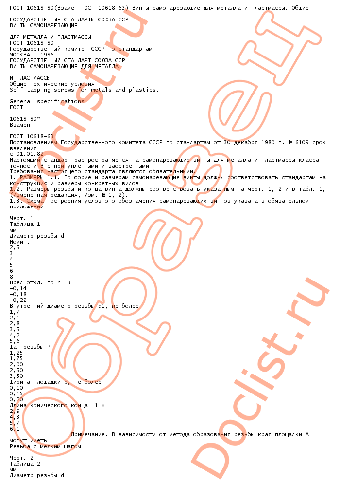ГОСТ 10618-80(взамен ГОСТ 10618-63) винты самонарезающие для металла и пластмассы. Общие техничес. .. скачать