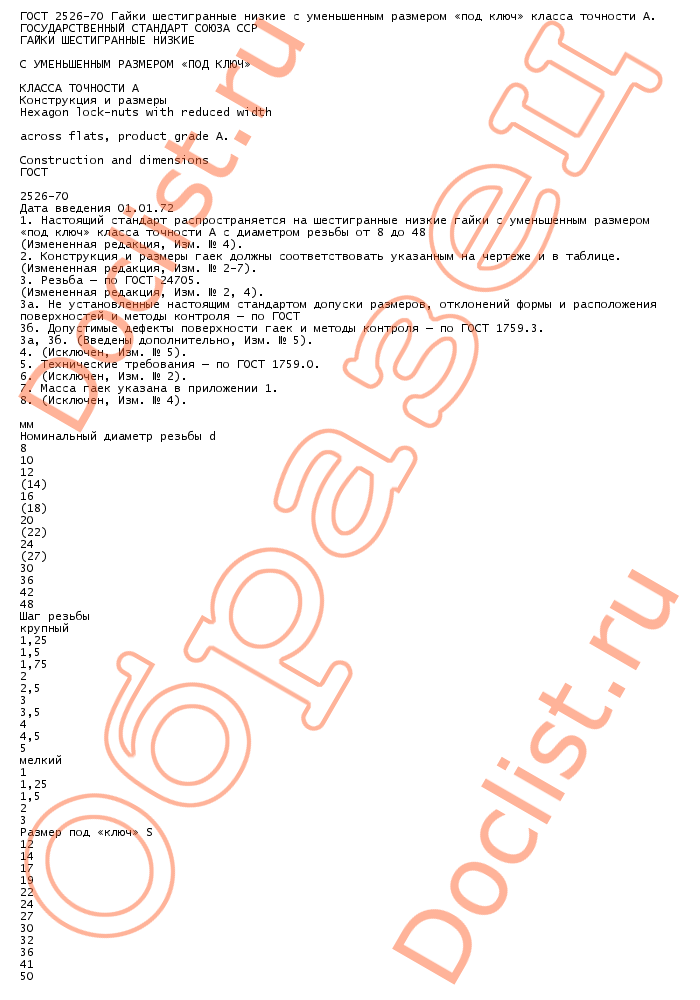 ГОСТ 2526-70 гайки шестигранные низкие с уменьшенным размером «под ключ» класса точности а. Конст. .. скачать