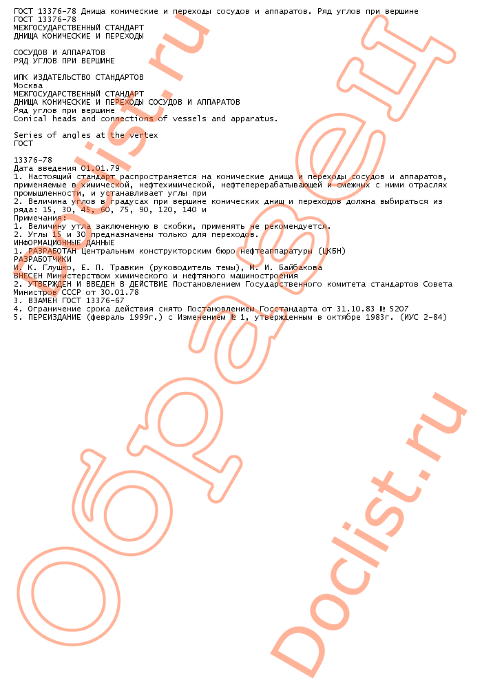 ГОСТ 13376-78 днища конические и переходы сосудов и аппаратов. Ряд углов при вершине скачать