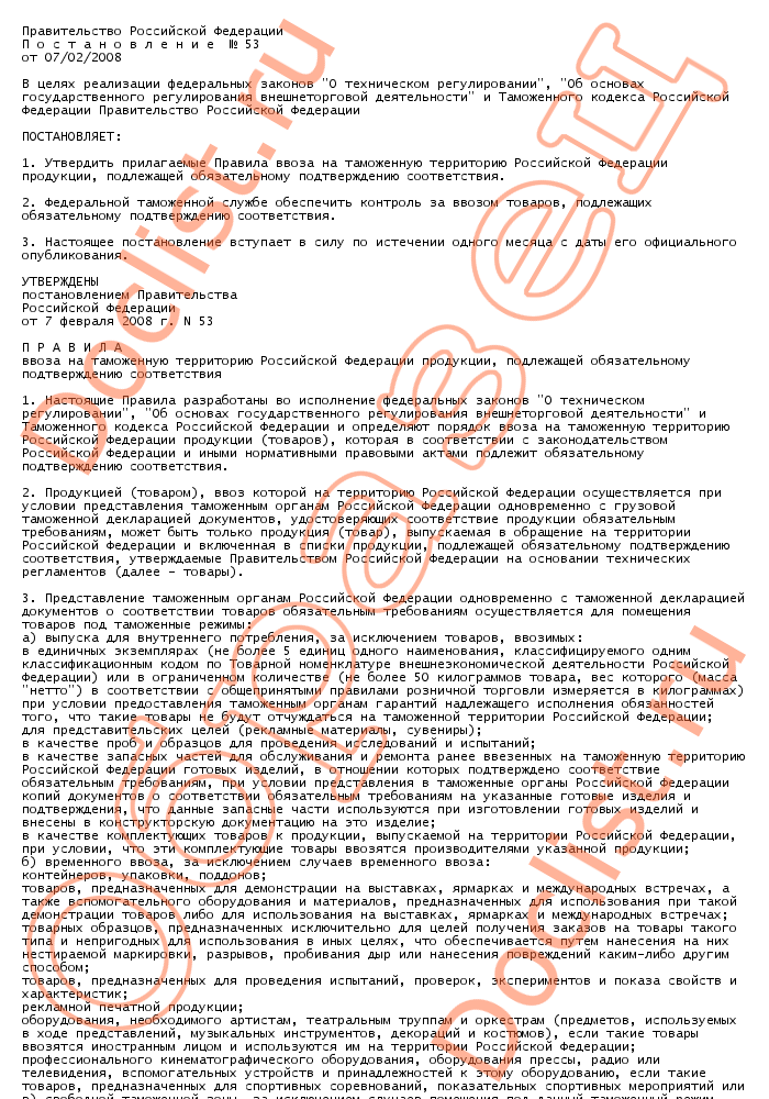 Правительство РФ: Постановление № 53 от 07/02/2008 скачать образец документа