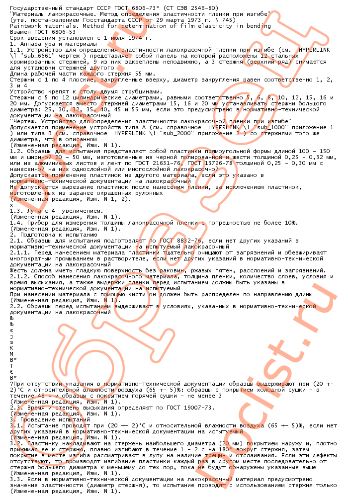 ГОСТ 6806-73* (ст СЭВ 2546-80) Материалы лакокрасочные. Метод определения эластичности пленки при изгибе скачать
