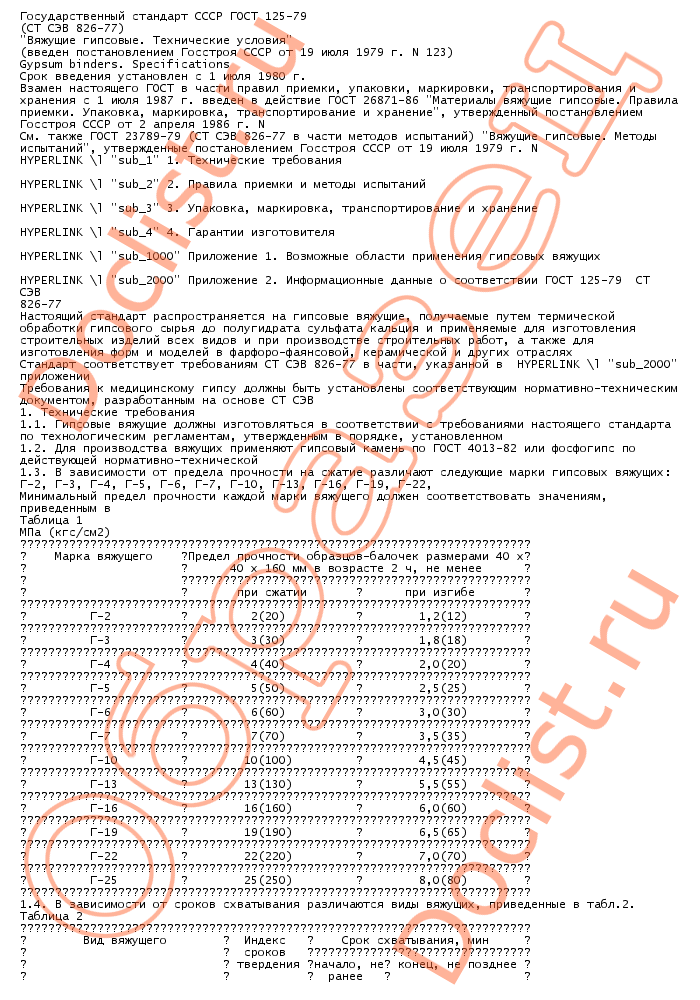 ГОСТ 125-79 (ст СЭВ 826-77) Вяжущие гипсовые. Технические условия скачать