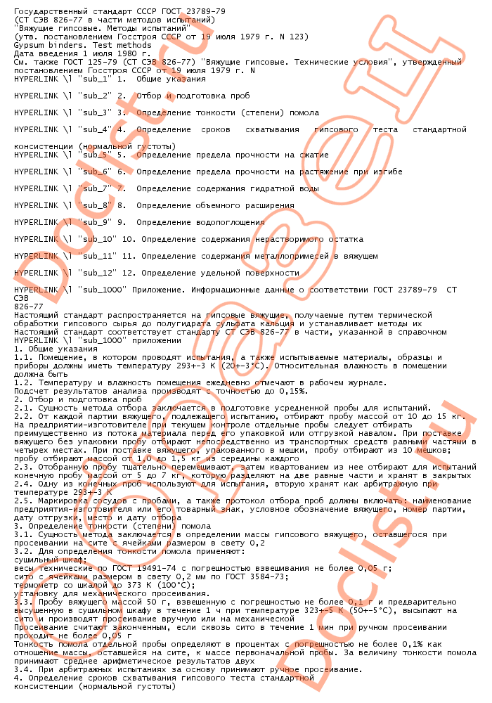 ГОСТ 23789-79 (ст СЭВ 826-77 в части методов испытаний) Вяжущие гипсовые. Методы испытаний скачать