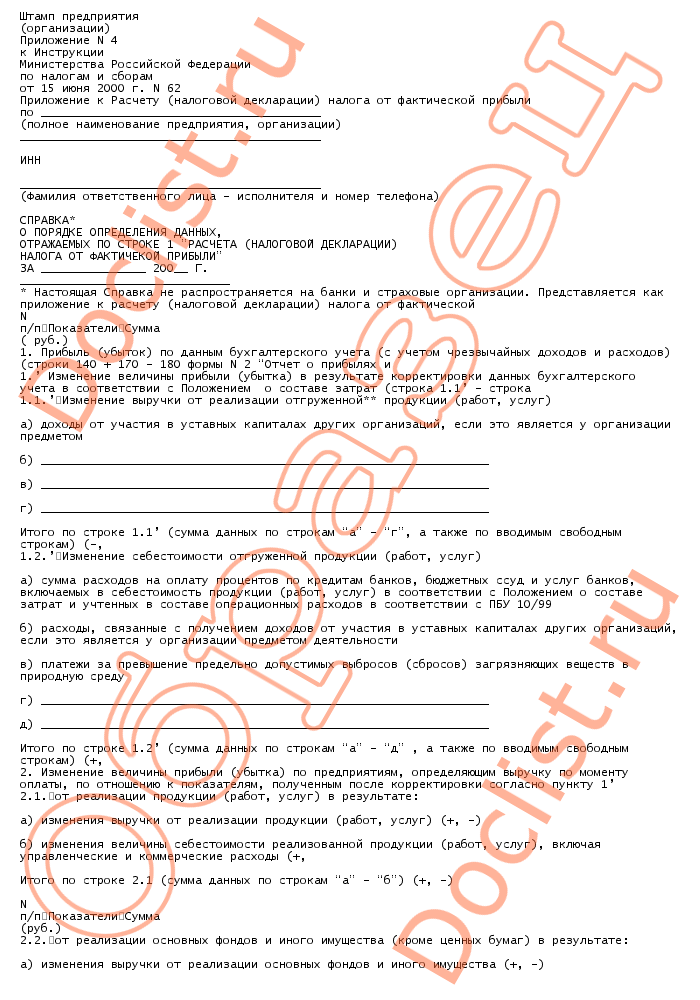 Справка о порядке определения данных, отражаемых по строке 1 "Расчета (налоговой декларации) налога от фактической прибыли" скачать образец документа
