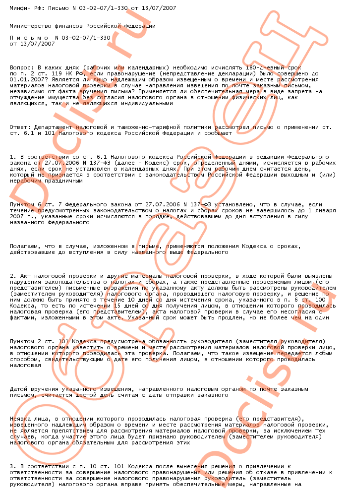 Минфин РФ: Письмо N 03-02-07/1-330 от 13/07/2007 скачать образец документа