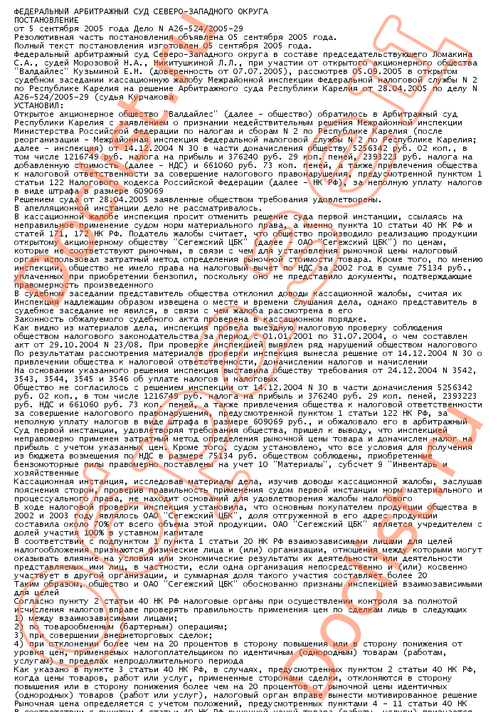 Постановление ФАС СЗО от 5 сентября 2005 года N А26-524/2005-29 скачать образец документа