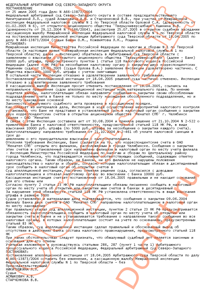 Постановление ФАС РФ Северо-Западного округа от 25.07.2005 г. № А66-13873/2004 скачать образец документа